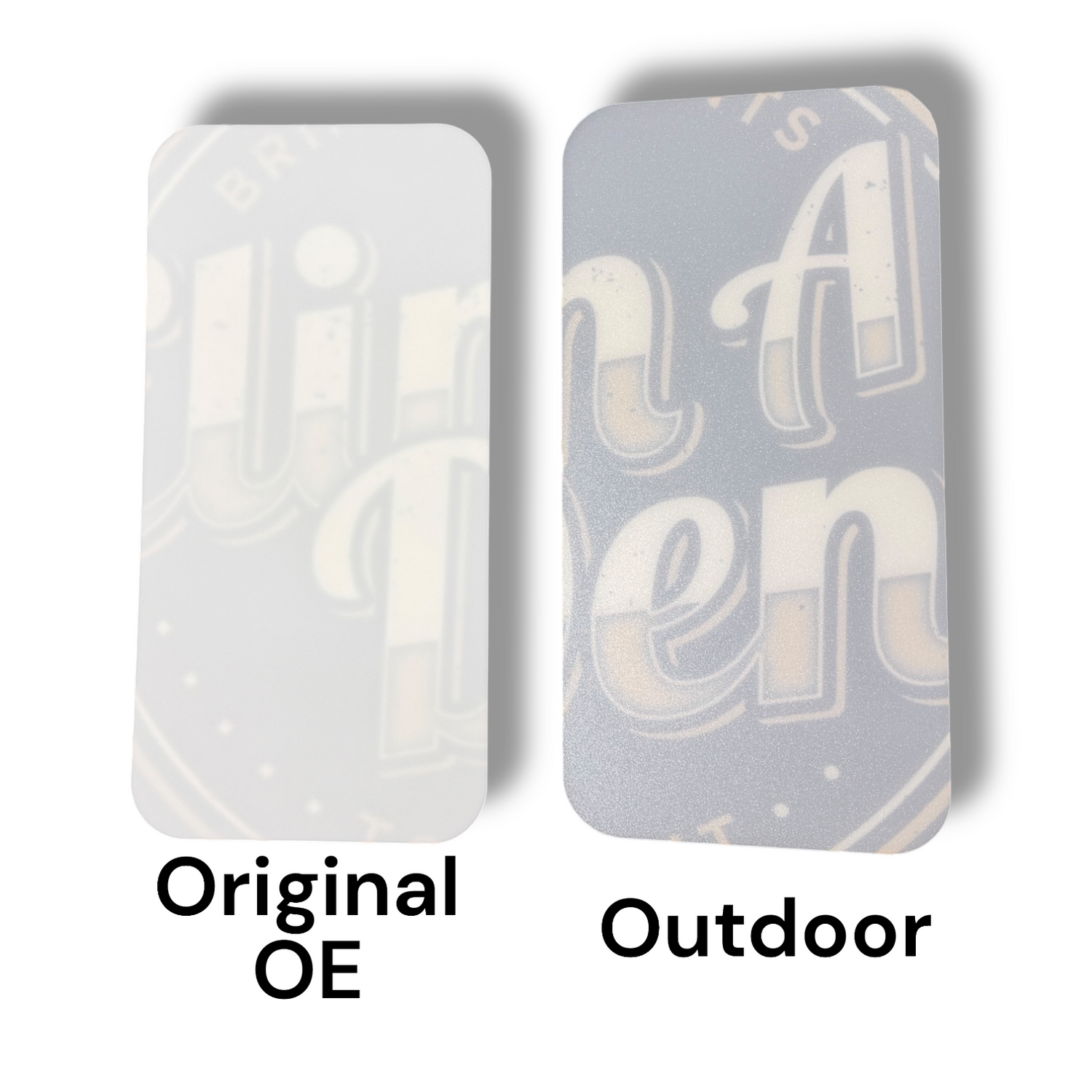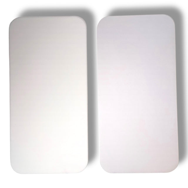 These 20" long lens comes in two options and is designed for use with the Elimadent X-Factor Wide 20 inch cordless LED light. The first option is the Original replacement lens. The second option comes with a matte anti-glare finish on one side and a high-gloss counterpart on the other, the double sided lens is ideal for outdoor use, as its lighter color helps reduce glare. The outdoor lens will allow more light through giving you a brighter fade.