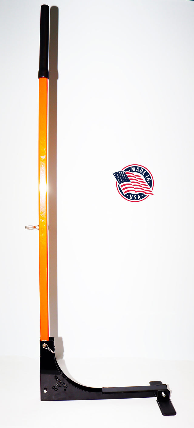 The Mantis by Daniel Gromm is a multi purpose leverage device used for applying tension to damage. Primarily used in large damage repairs using a static or stationary pull to achieve tension to the damage area. The Mantis can be used by standing on fulcrum point with one or two feet. Both feet are covered in military grade plastisol for years of performance. Handle (plastisol covered) is removable and the Mantis is collapsible for storage or travel. The Mantis weighs 16 lbs and has an overall height of 5 ft (60 inches).